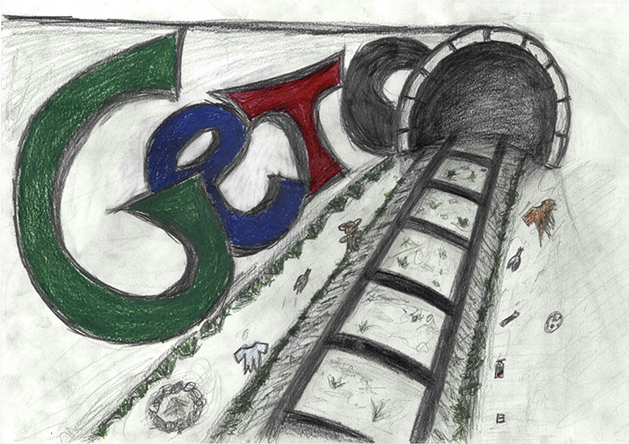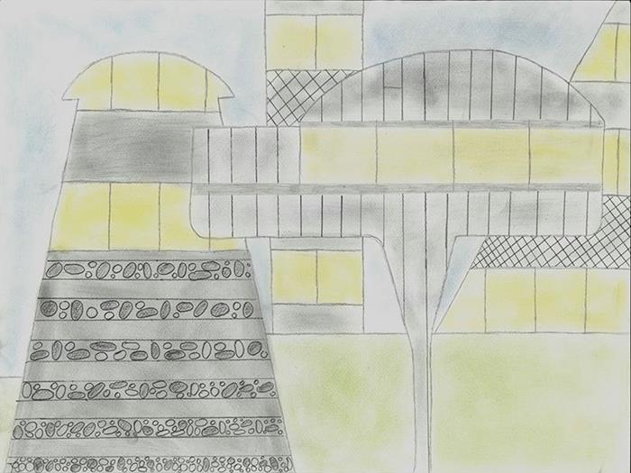 2b "Ein Baum wehrt sich" (A3, Farbstift, Filzstift, Kreidestift)