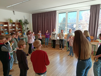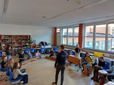 Mit spürbarer Neugier tauchten die jungen Gäste in verschiedene musikalische und kreative Stationen ein: Rhythmusübungen, erste Melodien auf Instrumenten und kleine szenische Sequenzen ließen sie die Vielfalt des schulischen Musikalltags unmittelbar erleben. Die Schülerinnen der 2C begleiteten die Gruppen mit großer Umsicht und sorgten für eine motivierende Atmosphäre.