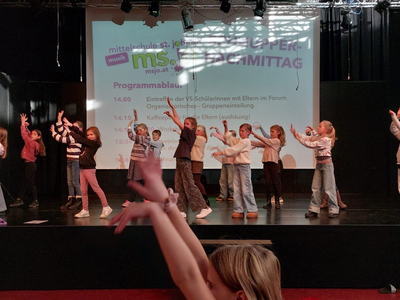 Von 14 bis 16 Uhr gestaltete das Team der Musikmittelschule – tatkräftig unterstützt von der Klasse 2C – drei 15-minütige Workshops für rund 100 interessierte Volkschüler*innen aus St. Johann und den Nachbargemeinden.