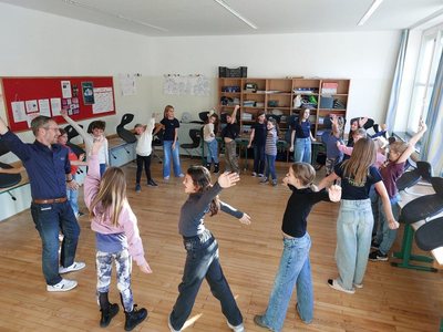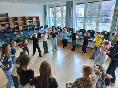 Mit spürbarer Neugier tauchten die jungen Gäste in verschiedene musikalische und kreative Stationen ein: Rhythmusübungen, erste Melodien auf Instrumenten und kleine szenische Sequenzen ließen sie die Vielfalt des schulischen Musikalltags unmittelbar erleben. Die Schülerinnen der 2C begleiteten die Gruppen mit großer Umsicht und sorgten für eine motivierende Atmosphäre.