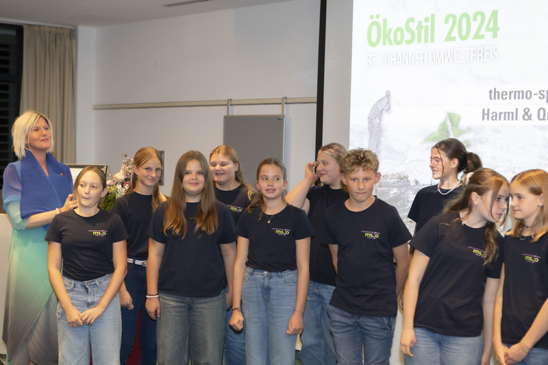 Auch 2024 wurde von der Stadtgemeinde St. Johann der Umweltpreis "ÖkoStil" verliehen. Dieser ging in diesem Jahr an die Firma "thermo-span". Die 3C-Klasse durfte die feierliche Übergabe mit fünf Beiträgen musikalisch umrahmen.